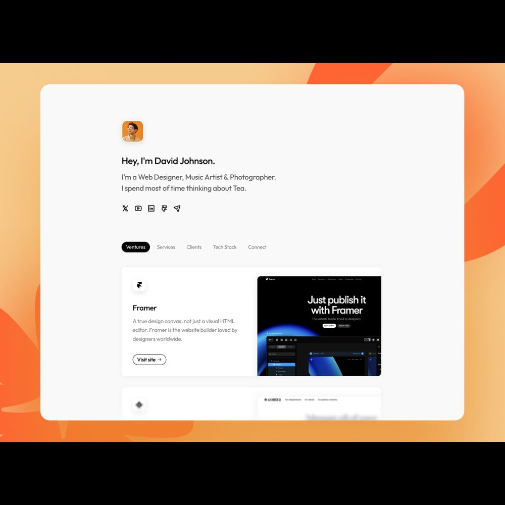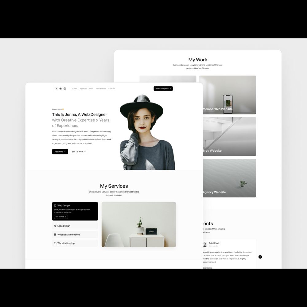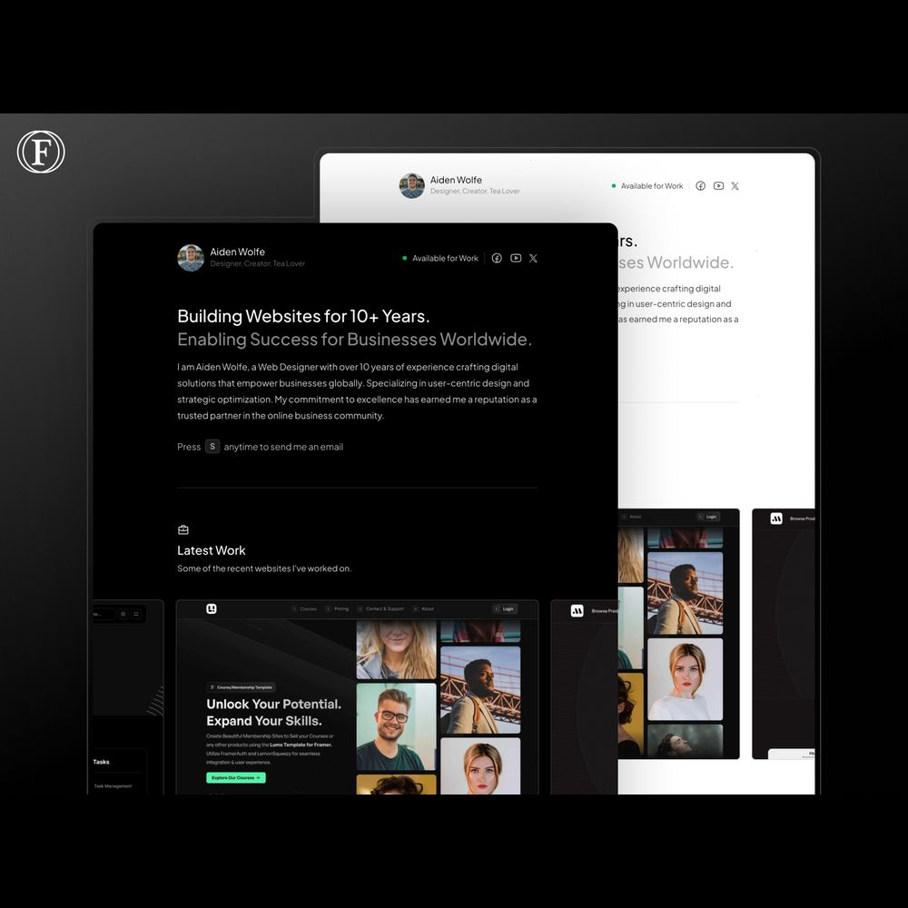 Folioz is a Minimal and Clean Personal Portfolio Template for Framer that is great for Freelancers, designers, Simple Portfolio sites, and more. See Live Demo → Amazing Features: Clean & Minimal DesignStunning Hover EffectsBeautiful Horizontal Services TabsCMS Integrated to showcase your WorkProjects Card Hover Effect with Custom CursorMinimal Testimonials CarouselMobile Responsive Check Out my other Popular Templates: LumaMellowDocifySleekfolio
